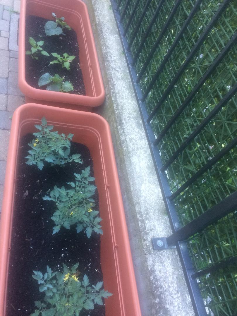 …. ecco il nostro orto, piantine aromatiche, pomodori, cetrioli e quest’anno Giulio ha richiesto pure due piantine di peperoni, visto che si è fatto tutta la vacanza sarda a sgranocchiare questo dolce ortaggio.
